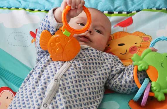 نوزاد بودن میتواند خسته کننده و ملال انگیز باشد، به ویژه وقتی نوزاد ناچار باشد زمانی طولانی به پشت دراز بکشد و چیزی هم در معرض دیدش قرار نگرفته باشد. هیچ تعجبی ندارد که این گروه از نوزادان اغلب مات و مبهوت و خوابآلود به نظر برسند. در این دورهی سنی، تنها راهی که نوزادان میتوانند با آن خودشان را سرگرم نگه دارند، این است که به اشیا و وسایل پیرامونشان نگاه کنند. از این رو میتوانید با آویزان کردن اشیای گوناگون و جالب بالای تخت نوزاد، لذت نگاه کردن، توجه کردن و تمرکز کردن را در او پرورش دهید. به علاوه بهتر است هر چند وقت یک بار هم اشیای آویز بالای تخت نوزاد را عوض کنید تا مانع از یک نواخت شدن آنها برای فرزندتان شوید.