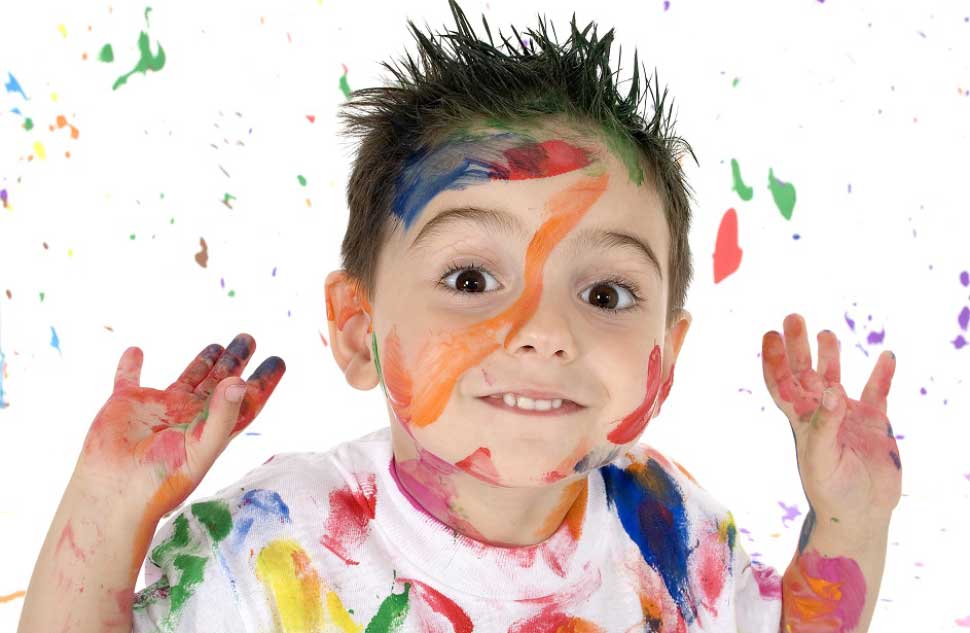 ♦ مقداری رنگ قرمز، آبی، زرد و سفید را روی یک پالت بریزید و یک بشقاب بیمصرف به کودک بدهید تا روی آن رنگها را با هم ترکیب کند.
